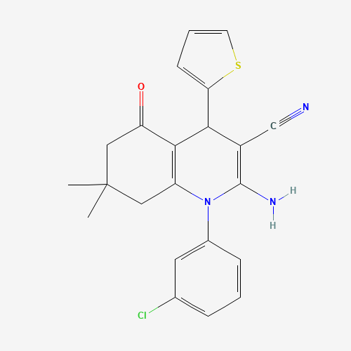 - Name: 2-Amino-1-(3-chlorophenyl)-7,7-dimethyl-5-oxo-4-(thiophen-2-yl)-1,4,5,6,7,8-hexahydroquinoline-3-carbonitrile