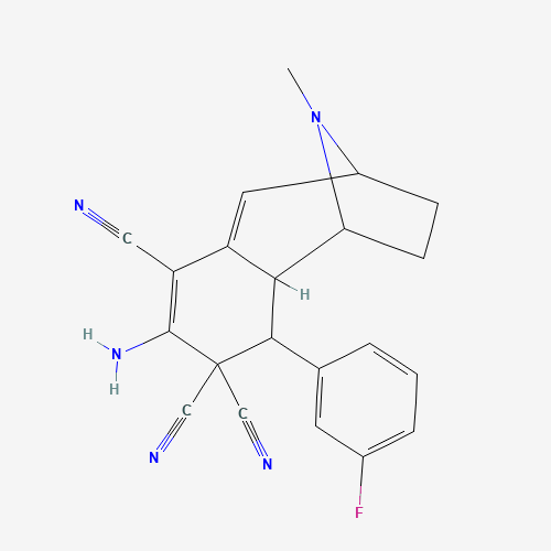 - Synonyms:DTXSID001108093;STL323038;AKOS022111473;2-amino-4-(3-fluorophenyl)-10-methyl-4,4a,5,6,7,8-hexahydro-3H-5,8-epiminobenzo[7]annulene-1,3,3-tricarbonitrile;2-Amino-4-(3-fluorophenyl)-4,4a,5,6,7,8-hexahydro-10-methyl-3H-benzocyclohepten-5,8-imine-1,3,3-tricarbonitrile;500102-33-0