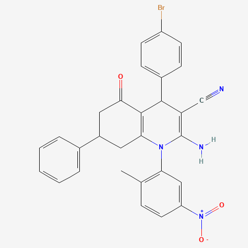 - Name: 2-Amino-4-(4-bromophenyl)-1-(2-methyl-5-nitrophenyl)-5-oxo-7-phenyl-1,4,5,6,7,8-hexahydroquinoline-3-carbonitrile