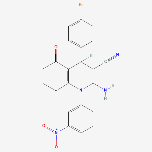 - Name: 2-Amino-4-(4-bromophenyl)-1-(3-nitrophenyl)-5-oxo-1,4,5,6,7,8-hexahydro-3-quinolinecarbonitrile