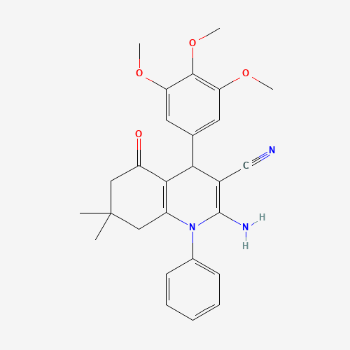 - Name: 2-Amino-7,7-dimethyl-5-oxo-1-phenyl-4-(3,4,5-trimethoxyphenyl)-1,4,5,6,7,8-hexahydroquinoline-3-carbonitrile