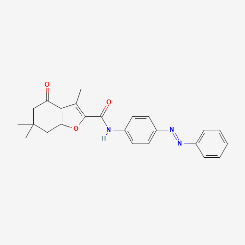 - Synonyms:DTXSID701038524;AKOS002781771;2-Benzofurancarboxamide, 4,5,6,7-tetrahydro-3,6,6-trimethyl-4-oxo-N-[4-(2-phenyldiazenyl)phenyl]-;627844-02-4
