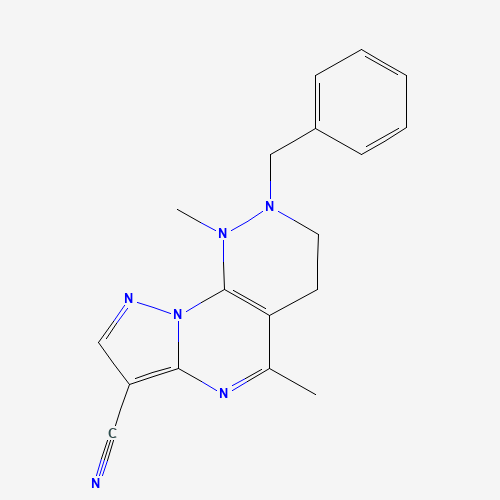 - Name: 2-Benzyl-1,5-dimethyl-1,2,3,4-tetrahydropyrazolo[5',1':2,3]pyrimido[4,5-c]pyridazine-7-carbonitrile