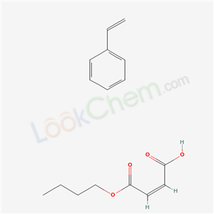 - Synonyms:2-Butenedioic acid (Z)-,monobutyl ester,polymer with ethenylbenzene;Butyl maleate,styrene polymer;2-Butenedioic acid (2Z)-,1-butyl ester,polymer with ethenylbenzene;2-Butenedioic acid (2Z)-,monobutyl ester,polymer with ethenylbenzene;