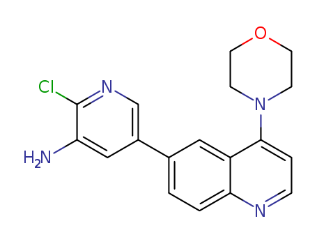 - Synonyms:2-chloro-5-(4-morpholinoquinolin-6-yl)pyridin-3-amine;1201844-96-3;SCHEMBL1543367;KAQDOSVFMJQFLT-UHFFFAOYSA-N;DTXSID601194117;2-Chloro-5-[4-(4-morpholinyl)-6-quinolinyl]-3-pyridinamine