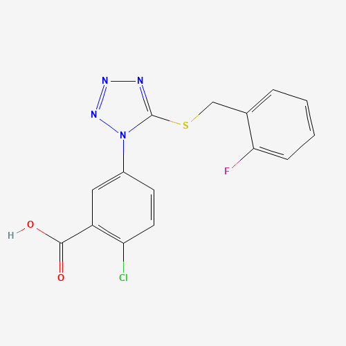 - Name: 2-Chloro-5-[5-[(2-fluorophenyl)methylsulfanyl]tetrazol-1-yl]benzoic acid