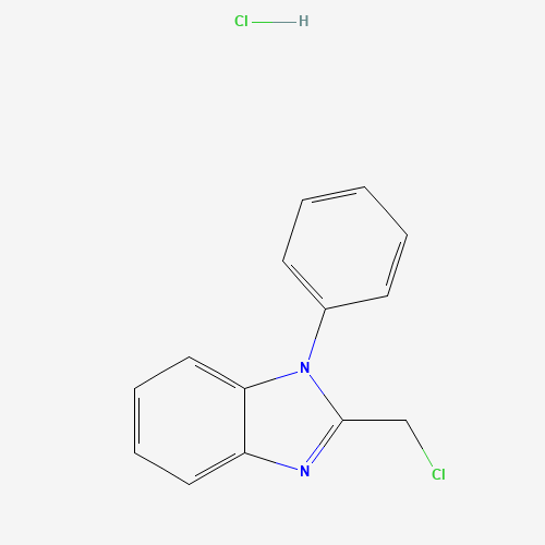 - Synonyms:2-CHLOROMETHYL-1-PHENYL-1H-BENZOIMIDAZOLE HYDROCHLORIDE;1187932-60-0;2-(chloromethyl)-1-phenylbenzimidazole;hydrochloride;2-(chloromethyl)-1-phenyl-1H-1,3-benzodiazole hydrochloride;MFCD11506055;SB31511