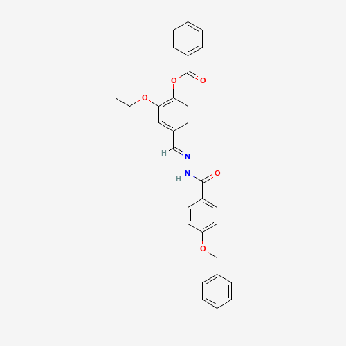 - Synonyms:AKOS024416201;2-ETHOXY-4-(2-(4-((4-METHYLBENZYL)OXY)BENZOYL)CARBOHYDRAZONOYL)PHENYL BENZOATE