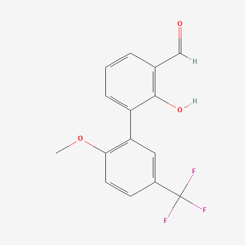 - Synonyms:1261945-30-5;2-FORMYL-6-(2-METHOXY-5-TRIFLUOROMETHYLPHENYL)PHENOL;DTXSID00685371;MFCD18314895;2-Hydroxy-2'-methoxy-5'-(trifluoromethyl)[1,1'-biphenyl]-3-carbaldehyde