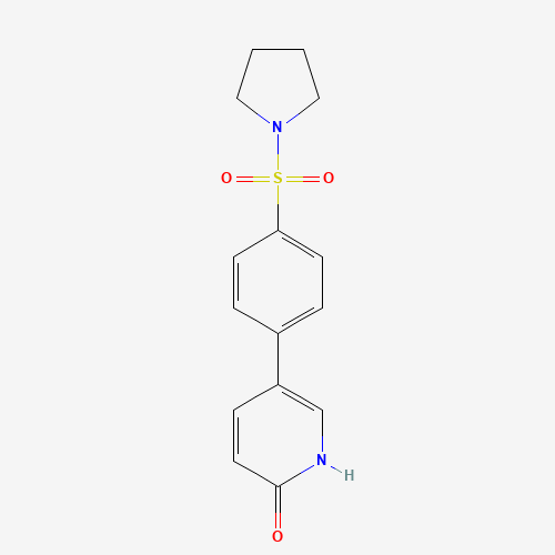 - Synonyms:1262000-74-7;2-HYDROXY-5-[4-(PYRROLIDINYLSULFONYL)PHENYL]PYRIDINE;5-(4-(Pyrrolidin-1-ylsulfonyl)phenyl)pyridin-2-ol;DTXSID80683254;MFCD18312564;5-[4-(Pyrrolidine-1-sulfonyl)phenyl]pyridin-2(1H)-one