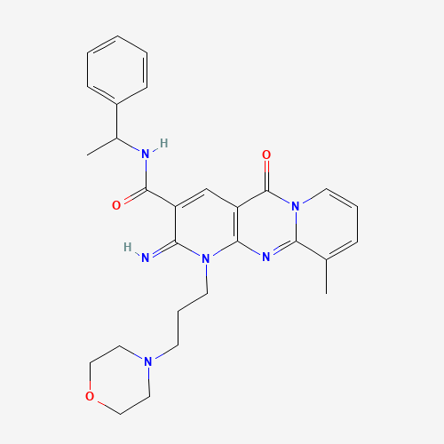 - Synonyms:2-Imino-10-methyl-1-(3-morpholinopropyl)-5-oxo-N-(1-phenylethyl)-2,5-dihydro-1H-dipyrido[1,2-a:2',3'-d]pyrimidine-3-carboxamide;609794-53-8;Oprea1_098470;HMS1615C05;AKOS001660787;AKOS016067671;2-IMINO-10-METHYL-1-[3-(4-MORPHOLINYL)PROPYL]-5-OXO-N-(1-PHENYLETHYL)-1,5-DIHYDRO-2H-DIPYRIDO[1,2-A:2',3'-D]PYRIMIDINE-3-CARBOXAMIDE;2-IMINO-10-METHYL-1-[3-(4-MORPHOLINYL)PROPYL]-5-OXO-N-(1-PHENYLETHYL)-1,5-DIHYDRO-2H-DIPYRIDO[1,2-A:2,3-D]PYRIMIDINE-3-CARBOXAMIDE