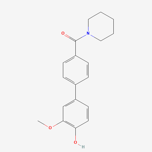 - Synonyms:1261908-20-6;2-METHOXY-4-[4-(PIPERIDINE-1-CARBONYL)PHENYL]PHENOL;DTXSID10685802;MFCD18315386;(4'-Hydroxy-3'-methoxy[1,1'-biphenyl]-4-yl)(piperidin-1-yl)methanone