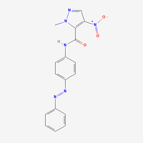 - Synonyms:DTXSID601040461;STK837723;2-Methyl-4-nitro-2H-pyrazole-3-carboxylic acid (4-phenylazo-phenyl)-amide;AKOS000669189;1-methyl-4-nitro-N-{4-[(E)-phenyldiazenyl]phenyl}-1H-pyrazole-5-carboxamide;1H-Pyrazole-5-carboxamide, 1-methyl-4-nitro-N-[4-(2-phenyldiazenyl)phenyl]-;356564-97-1