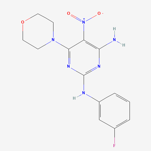 - Name: 2-N-(3-fluorophenyl)-6-morpholin-4-yl-5-nitropyrimidine-2,4-diamine