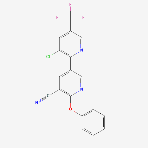 - Synonyms:339011-81-3;2-Phenoxy-5-(3-chloro-5-trifluoromethyl-2-pyridyl)-3-cyanopyridine;3-chloro-6'-phenoxy-5-(trifluoromethyl)-[2,3'-bipyridine]-5'-carbonitrile;5-[3-chloro-5-(trifluoromethyl)pyridin-2-yl]-2-phenoxypyridine-3-carbonitrile;Bionet1_001510;HMS572H12;AKOS005098091;7H-005;3-chloro-6'-phenoxy-5-(trifluoromethyl)-2,3'-bipyridine-5'-carbonitrile
