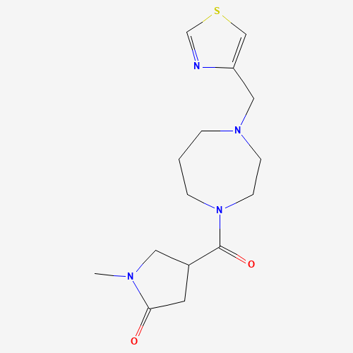 - Synonyms:DTXSID401118791;AKOS033020177;Z1069960598;1333988-67-2;2-Pyrrolidinone, 4-[[hexahydro-4-(4-thiazolylmethyl)-1H-1,4-diazepin-1-yl]carbonyl]-1-methyl-