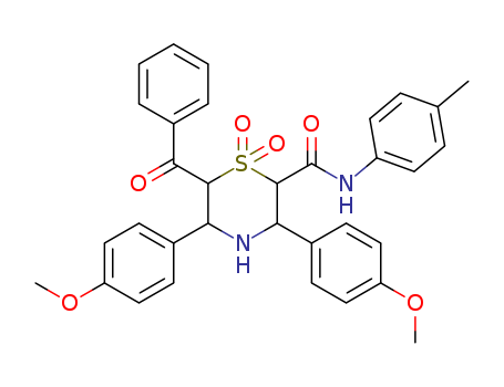 - 61884-02-4/2-Thiomorpholinecarboxamide, 6-benzoyl-3,5-bis(4-methoxyphenyl)-N-(4-methylphenyl)-, 1,1-dioxide