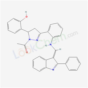 - 133381-54-1/2-[1-acetyl-3-(2-{[(E)-(2-phenyl-3H-indol-3-ylidene)methyl]amino}phenyl)-4,5-dihydro-1H-pyrazol-5-yl]phenol