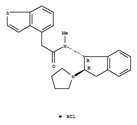 - Synonyms:Benzo[b]thiophene-4-acetamide,N-[2,3-dihydro-2-(1-pyrrolidinyl)-1H-inden-1-yl]-N-methyl-, monohydrochloride,trans- (9CI); Benzo[b]thiophene-4-acetamide,N-[2,3-dihydro-2-(1-pyrrolidinyl)-1H-inden-1-yl]-N-methyl-, monohydrochloride,trans-(?à)-