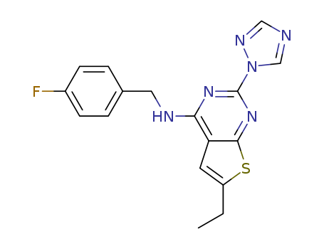 - Name: 2-(1,2,4-triazol-1-yl)-6-ethyl-4-(4-fluorobenzylamino)thieno[2,3-d]pyrimidine