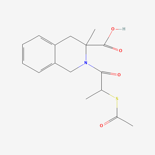 - Synonyms:CHEMBL164057;DTXSID101123886;BDBM50021337;2-(2-Acetylsulfanyl-propionyl)-3-methyl-1,2,3,4-tetrahydro-isoquinoline-3-carboxylic acid;81089-91-0;2-[2-(Acetylthio)-1-oxopropyl]-1,2,3,4-tetrahydro-3-methyl-3-isoquinolinecarboxylic acid