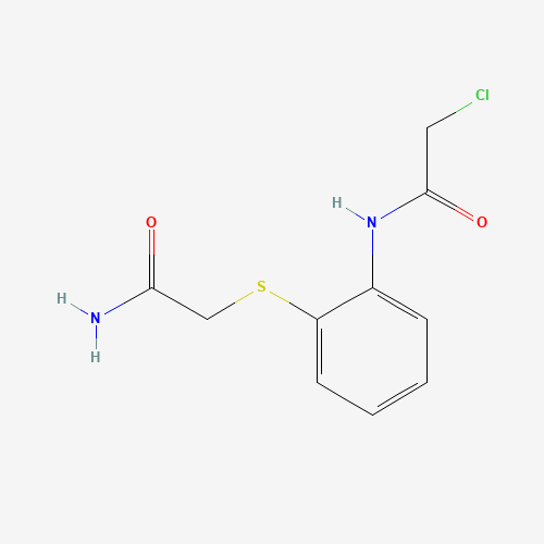 - Synonyms:2-{[2-(2-chloroacetamido)phenyl]sulfanyl}acetamide;854357-43-0;N-{2-[(2-amino-2-oxoethyl)thio]phenyl}-2-chloroacetamide;2-[2-[(2-chloroacetyl)amino]phenyl]sulfanylacetamide;n-(2-[(2-amino-2-oxoethyl)thio]phenyl)-2-chloroacetamide;N-[2-[(2-Amino-2-oxoethyl)thio]phenyl]-2-chloroacetamide;DTXSID001201134;AKOS009013428;CS-0233700;EN300-13548;SR-01000069994;SR-01000069994-1;Z90666854