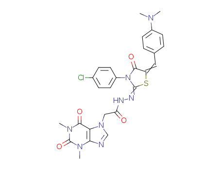 - Synonyms:2-{2-[2-(1,3-dimethylxanthin-7-yl)acethyl]hydrazono}-3-(4-chlorophenyl)-5-(4-N-dimethylaminobenzyliden)thiazolidin-4-one