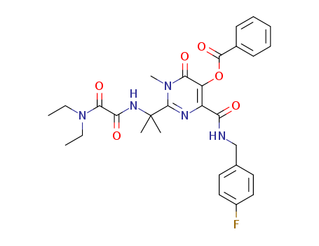 - Synonyms:2-(2-(2-(diethylamino)-2-oxoacetamido)propan-2-yl)-4-(4-fluorobenzylcarbamoyl)-1-methyl-6-oxo-1,6-dihydropyrimidin-5-yl benzoate