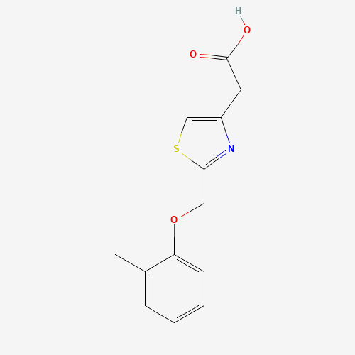 - Synonyms:879637-01-1;4-Thiazoleacetic acid, 2-[(2-methylphenoxy)methyl]-;2-[2-[(2-methylphenoxy)methyl]-1,3-thiazol-4-yl]acetic Acid;2-(2-((o-tolyloxy)methyl)thiazol-4-yl)acetic acid;SCHEMBL22640082;2-[2-(2-methylphenoxymethyl)-1,3-thiazol-4-yl]aceticacid;DTXSID901231853;MFCD06858087;AKOS000273586;2-[(2-Methylphenoxy)methyl]-4-thiazoleacetic acid;F3284-7869;{2-[(2-methylphenoxy)methyl]-1,3-thiazol-4-yl}acetic acid