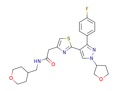 - Synonyms:2-{2-[3-(4-fluorophenyl)-1-(tetrahydrofuran-3-yl)-1H-pyrazol-4-yl]-1,3-thiazol-4-yl}-N-(tetrahydro-2H-pyran-4-ylmethyl)acetamide