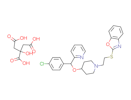 - Name: 2-[2-[4-[(4-chlorophenyl)-2-pyridylmethoxy]-1-piperidyl]ethylthio]benzoxazole citrate