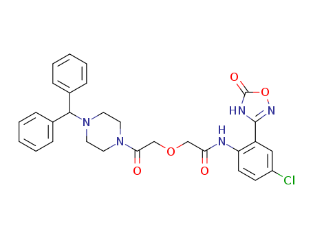 - Synonyms:2-(2-(4-benzhydrylpiperazin-1-yl)-2-oxoethoxy)-N-(4-chloro-2-(5-oxo-4,5-dihydro-1,2,4-oxadiazol-3-yl)phenyl)acetamide