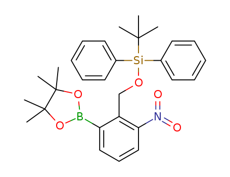 - Synonyms:2-[2-(tert-butyl-diphenyl-silanyloxymethyl)-3-nitro-phenyl]-4,4,5,5-tetramethyl-[1,3,2]dioxaborolane