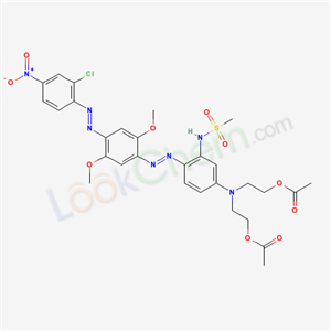 - Synonyms:({4-[(e)-{4-[(e)-(2-chloro-4-nitrophenyl)diazenyl]-2,5-dimethoxyphenyl}diazenyl]-3-[(methylsulfonyl)amino]phenyl}imino)diethane-2,1-diyl diacetate;2-[2-acetyloxyethyl-[4-[[4-[(2-chloranyl-4-nitro-phenyl)diazenyl]-2,5-dimethoxy-phenyl]diazenyl]-3-(methylsulfonylamino)phenyl]amino]ethyl ethanoate;
