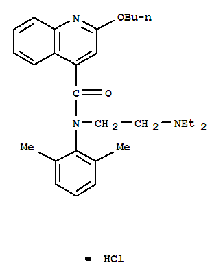 - Synonyms:4-Quinolinecarboxamide,2-butoxy-N-[2-(diethylamino)ethyl]-N-(2,6-dimethylphenyl)-, monohydrochloride(9CI)