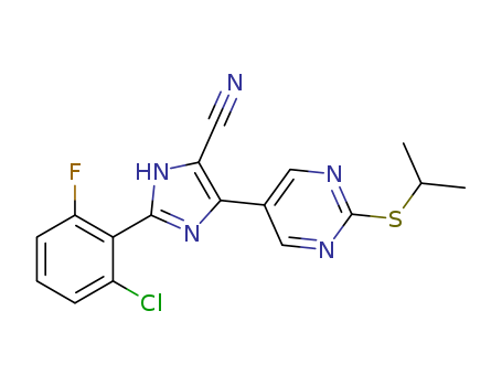 - Synonyms:2-(2-chloro-6-fluorophenyl)-4-(2-(isopropylthio)pyrimidin-5-yl)-1H-imidazole-5-carbonitrile