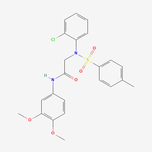 - Synonyms:2-{2-chloro[(4-methylphenyl)sulfonyl]anilino}-N-(3,4-dimethoxyphenyl)acetamide;DTXSID701128927;STL086600;AKOS003206600;2-(2-chloro-N-(4-methylphenyl)sulfonylanilino)-N-(3,4-dimethoxyphenyl)acetamide;AB00103765-01;AG-690/15440368;2-[(2-Chlorophenyl)[(4-methylphenyl)sulfonyl]amino]-N-(3,4-dimethoxyphenyl)acetamide;N~2~-(2-chlorophenyl)-N-(3,4-dimethoxyphenyl)-N~2~-[(4-methylphenyl)sulfonyl]glycinamide;333454-67-4