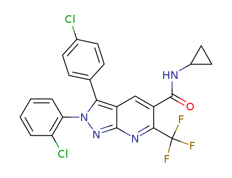 2-(2-chlorophenyl)-3-(4-chlorophenyl)-N-cyclopropyl-6-(trifluoromethyl)-2H-pyrazolo[3,4-b]pyridine-5-carboxamide(1174628-21-7)