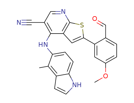 - 930292-79-8/2-(2-formyl-5-methoxyphenyl)-4-[(4-methyl-1H-indol-5-yl)amino]thieno[2,3-b]pyridine-5-carbonitrile