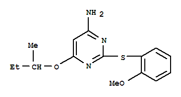 - Synonyms:4-Pyrimidinamine,2-((2-methoxyphenyl)thio)-6-(1-methylpropoxy);6-sec-Butoxy-2-(2-methoxy-phenylsulfanyl)-pyrimidin-4-ylamine;2-[(2-methoxyphenyl)sulfanyl]-6-(1-methylpropoxy)pyrimidin-4-amine;