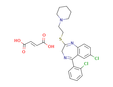 - Synonyms:2-(2-piperidinoethylthio)-5-(2-chlorophenyl)-7-chloro-3H-1,4-benzodiazepine fumarate