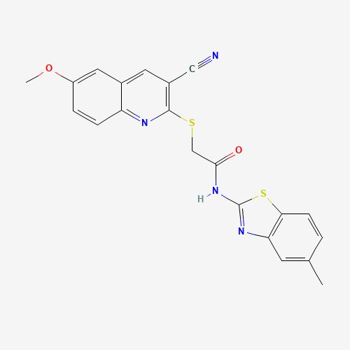 2-[(3-Cyano-6-methoxy-2-quinolinyl)thio]-N-(5-methyl-2-benzothiazolyl)acetamide