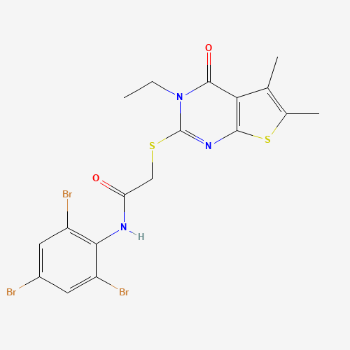- Name: 2-((3-Ethyl-5,6-dimethyl-4-oxo-3,4-dihydrothieno[2,3-d]pyrimidin-2-yl)thio)-N-(2,4,6-tribromophenyl)acetamide
