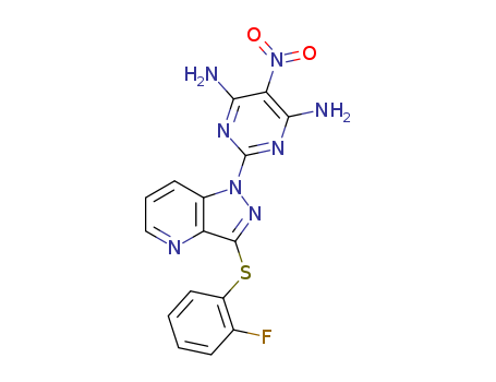 - Synonyms:2-{3-[(2-Fluorophenyl)sulphanyl]-1H-pyrazolo[4,3-b]pyridin-1-yl}-5-nitropyrimidine-4,6-diamine