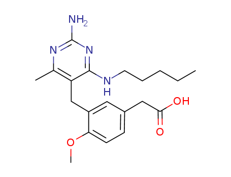 - Synonyms:2-(3-((2-amino-4-methyl-6-(pentylamino)pyrimidin-5-yl)methyl)-4-methoxyphenyl)acetic acid