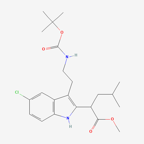 - Synonyms:1380571-77-6;2-[3-(2-tert-Butoxycarbonyl-amino-ethyl)-5-chloro-1H-indol-2-yl]-4-methyl-pentanoic acid methyl ester;1H-Indole-2-acetic acid, 5-chloro-3-[2-[[(1,1-dimethylethoxy)carbonyl]amino]ethyl]-alpha-(2-methylpropyl)-, methyl ester;methyl 2-[5-chloro-3-[2-[(2-methylpropan-2-yl)oxycarbonylamino]ethyl]-1H-indol-2-yl]-4-methylpentanoate;DTXSID101106240;2-[3-(2-tert-Butoxycarbonylaminoethyl)-5-chloro-1H-indol-2-yl]-4-methylpentanoic acid methyl ester