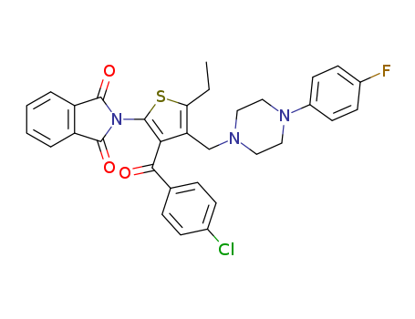 - Synonyms:2-{3-(4-chlorobenzoyl)-4-[(4-(4-fluorophenyl)piperazin-1-yl)methyl]-5-ethylthiophen-2-yl}isoindoline-1,3-dione