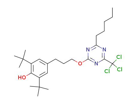 - Synonyms:2-<3-(4-hydroxy-3,5-di-tert-butylphenyl)propoxy>-4-pentyl-6-trichloromethyl-sym-triazine