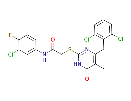 - 1200565-83-8/2-[(3-chloro-4-fluorophenylamino)carbonylmethylthio]-6-(2,6-dichlorobenzyl)-5-methylpyrimidin-4(3H)-one