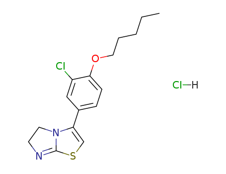 - Synonyms:Imidazo[2,1-b]thiazole,3-[3-chloro-4-(pentyloxy)phenyl]-5,6-dihydro-, monohydrochloride (9CI)